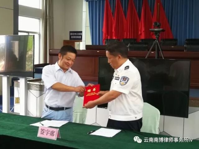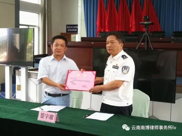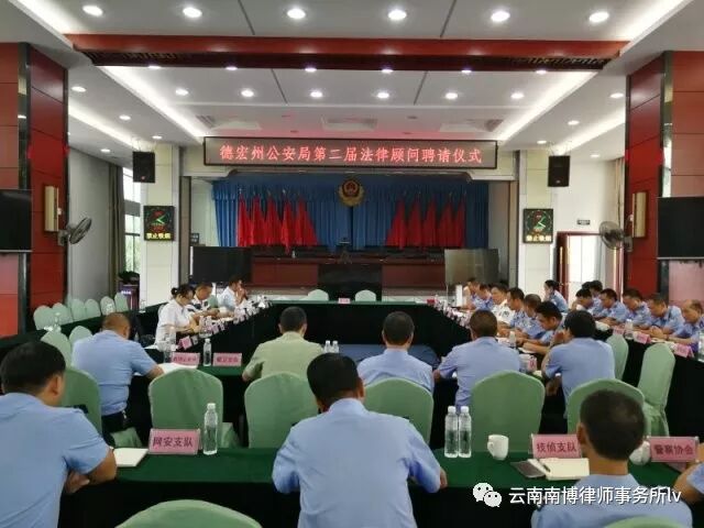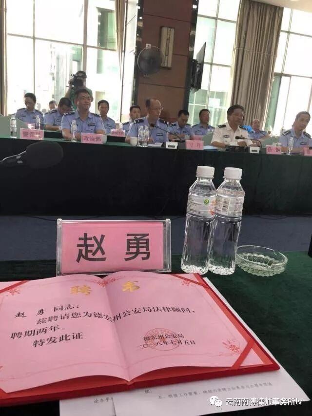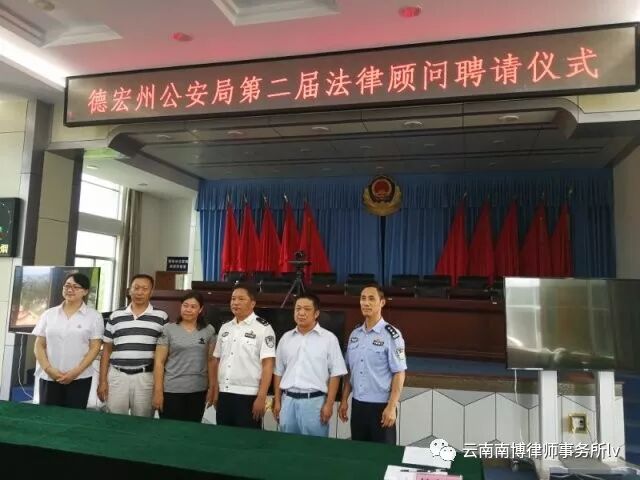 2018年7月5日,德宏州公局举行第二届法律顾问聘请仪式,为促进依法决策和依法行政,全面建设法治公安,德宏州公安局根据相关规定,续聘我所赵勇律师为德宏州公安局法律顾问,德宏州公安局副局长岳钢同志参与并主持聘请仪式。