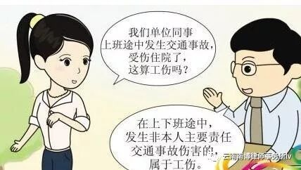 《工伤保险条例》第十四条 职工有下列情形之一的,应当认定为工伤:(六)在上下班途中,受到非本人主要责任的交通事故或者城市轨道交通、客运轮渡、火车事故伤害的。