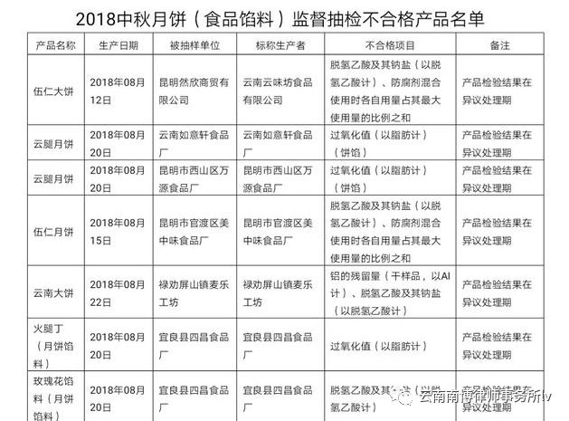 昆明市食药监局通过媒体向社会公告了2018年中秋月饼监督抽检不合格名单。