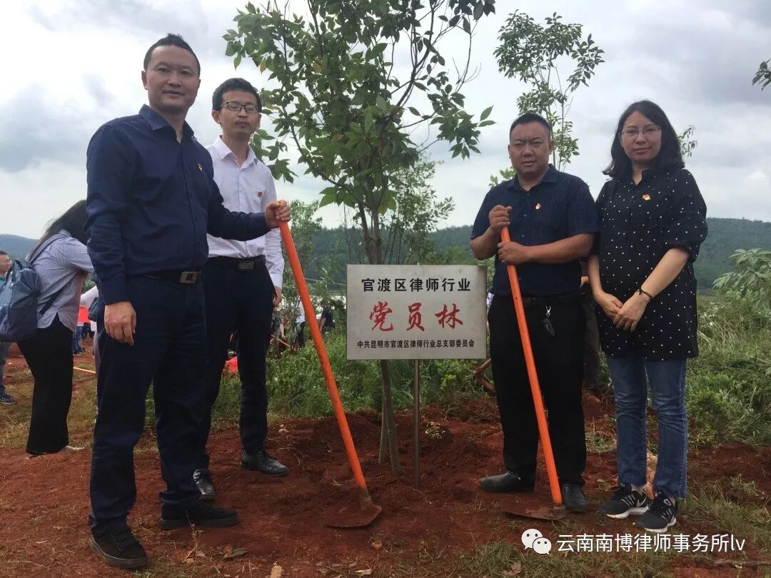种植“官渡区律师行业党员林”,每3名党员合种一棵树,党员代表为树苗挂牌。