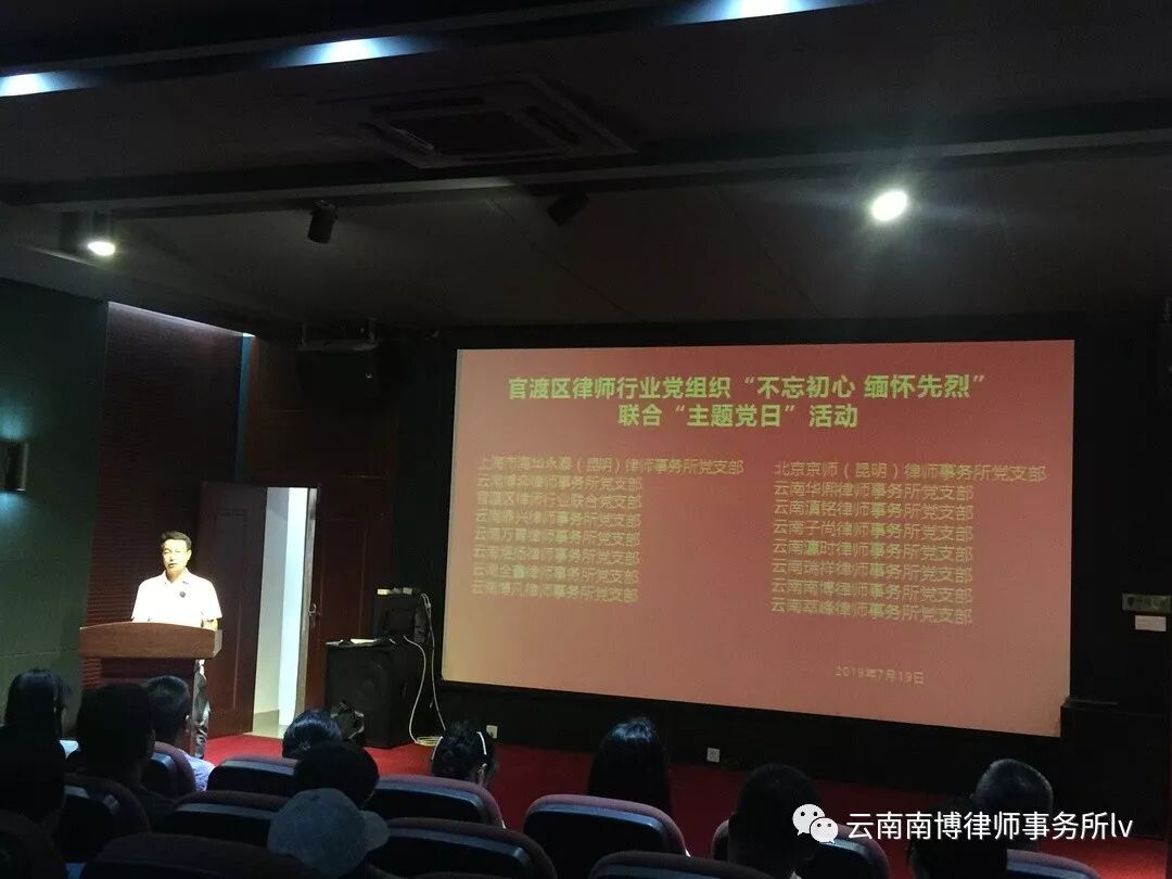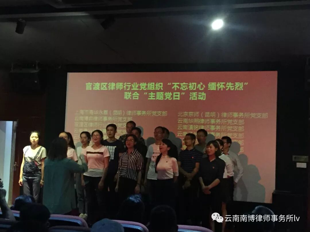 为贯彻落实中央、省、市、区委基层党建工作部署,围绕“基层党建创新提质年”重点任务,我所全体党员律师参加官渡区律师行业党总支举办的“不忘初心·缅怀先烈”联合“主题党日”活动暨庆祝“七一”活动。