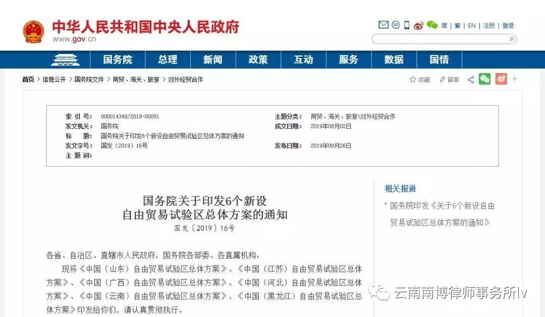 日前,国务院印发《中国(山东)、(江苏)、(广西)、(河北)、(云南)、(黑龙江)自由贸易试验区总体方案》。