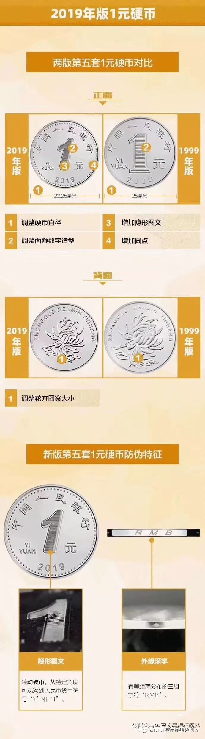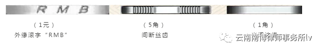 在硬币1元正面面额数字轮廓线内,有一组隐形图文“¥”和“1”,转动时可以看见。 ![]() |