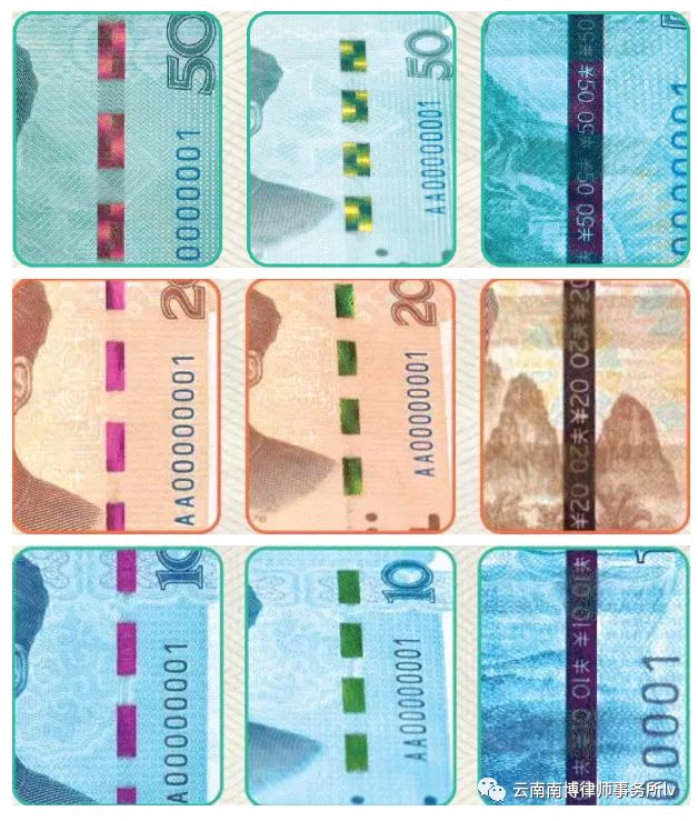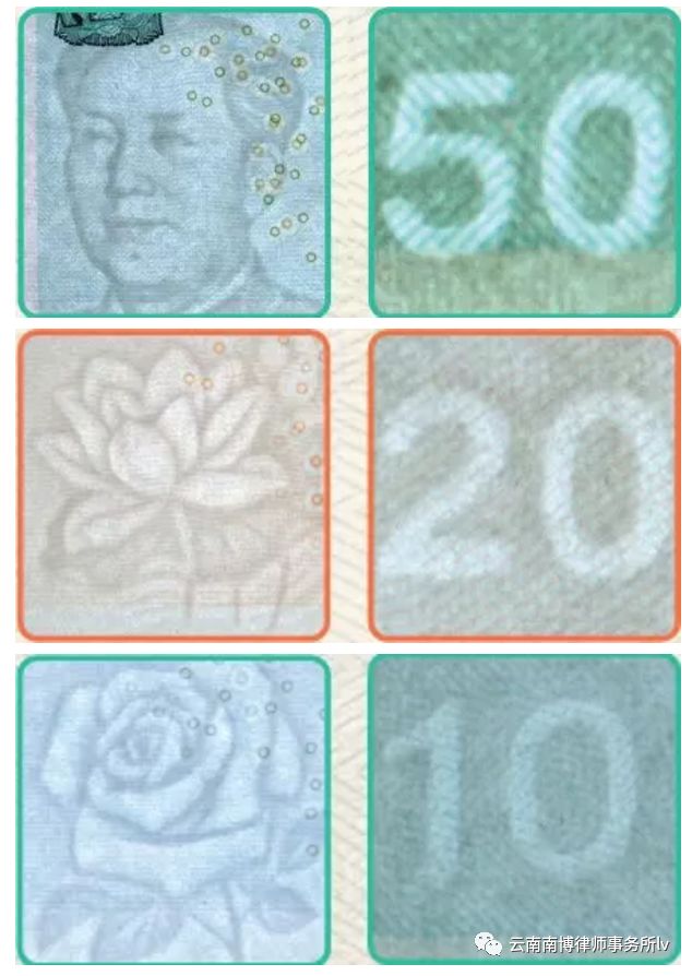 透光看50、20、10元的对印图案精准重合。 ![]() |