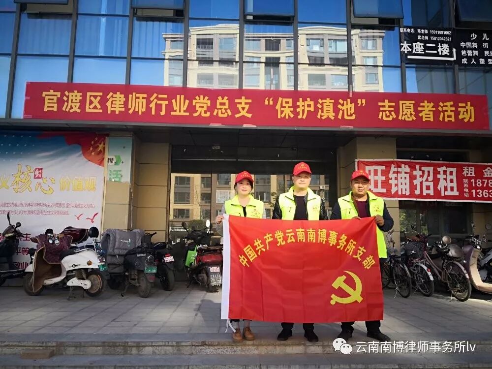 为贯彻落实上级党组织“不忘初心,牢记使命”主题教育活动部署,中共昆明市官渡区律师行业总支部委员会于今日(11月15日)举办官渡区律师行业党组织“保护滇池”志愿者活动,我所党员律师响应号召,积极参与服务群众的志愿活动。