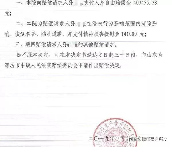 国家赔偿以支付赔偿金为主要方式。能够返还财产或者恢复原状的,予以返还财产或者恢复原状。侵犯公民人身自由的,每日赔偿金按照国家上年度职工日平均工资计算。2019年5月15日,最高人民法院,最高人民检察院下发通知,公布了自2019年5月15日起作出的国家赔偿决定涉及侵犯公民人身自由权的赔偿金标准为每日315.94元。(本案中315.94天X1277元=403455.38元)