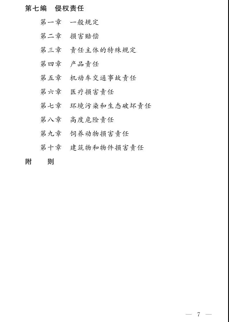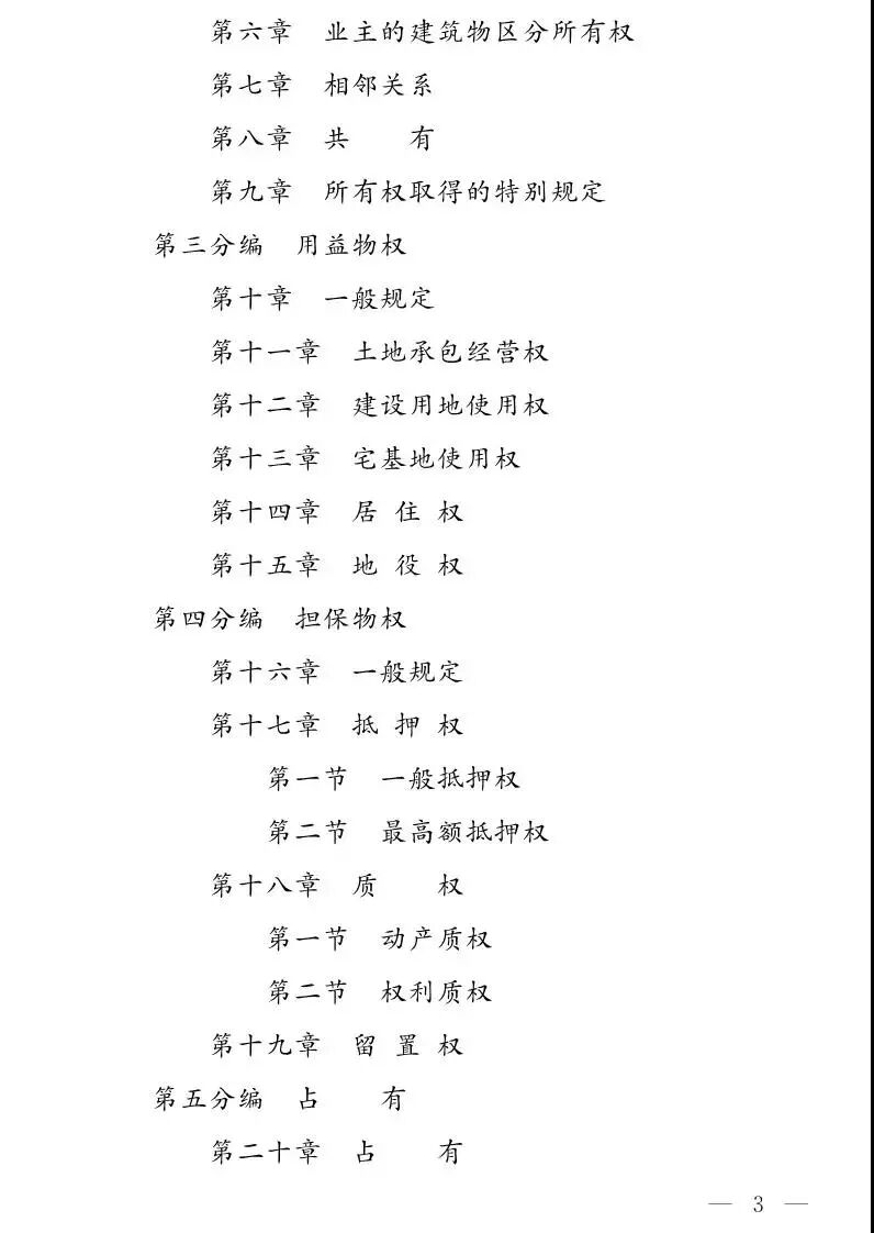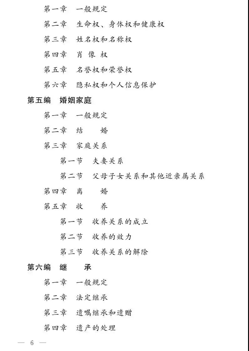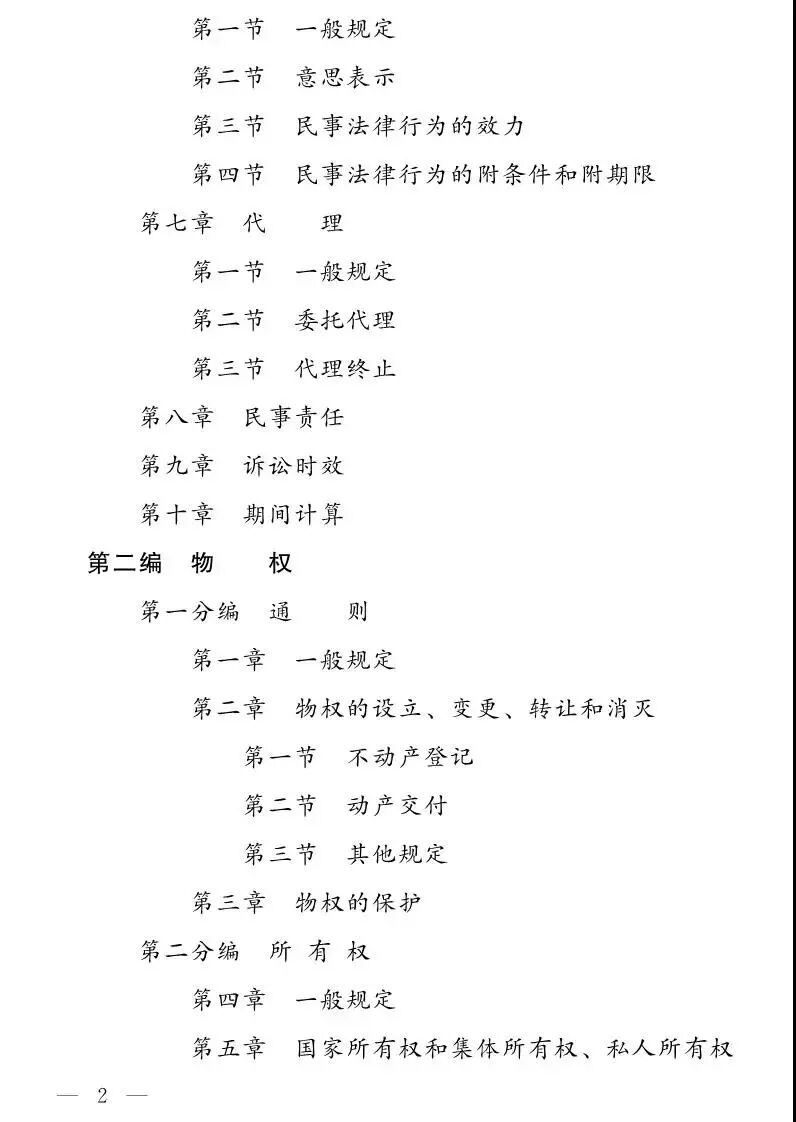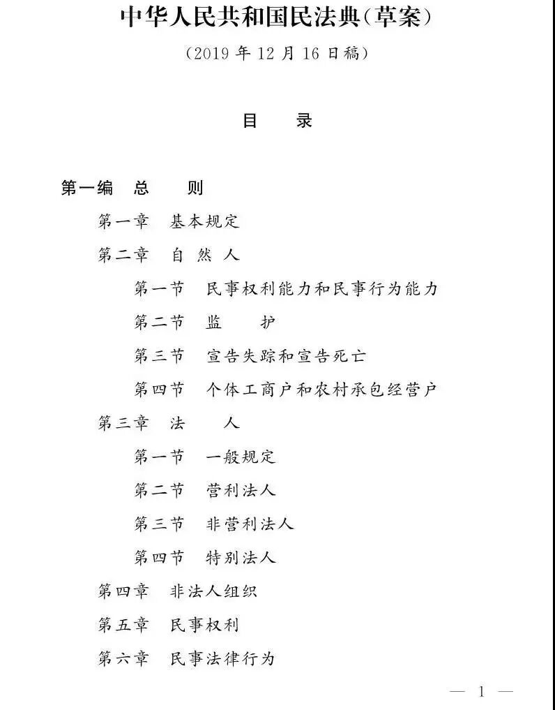 《中华人民共和国民法典(草案)》(2019年12月16日稿)目录