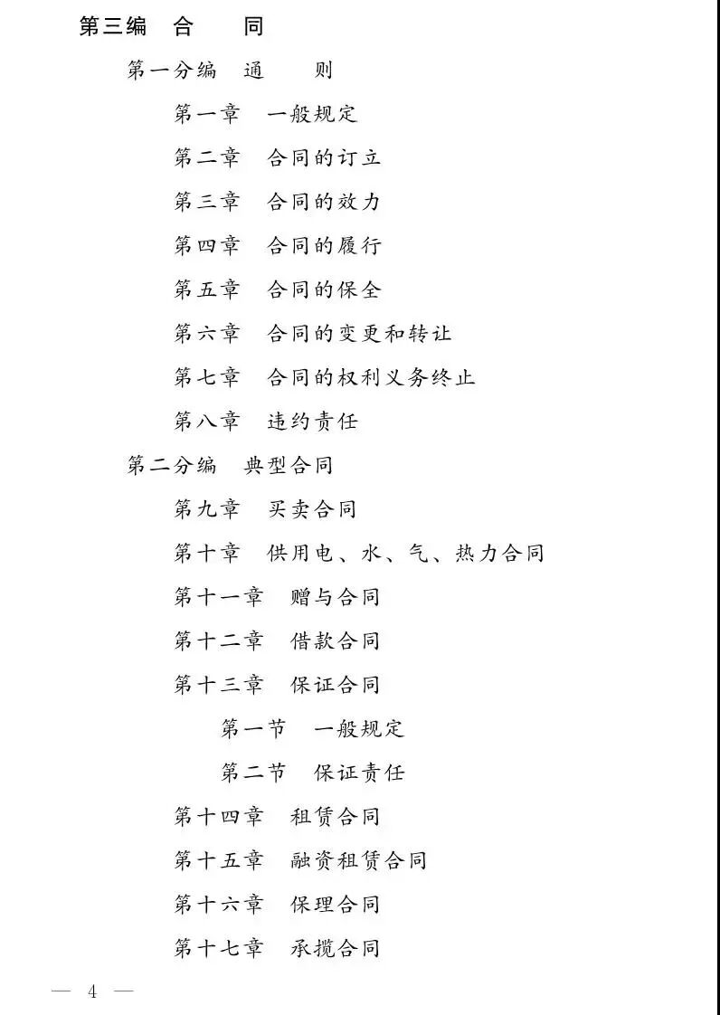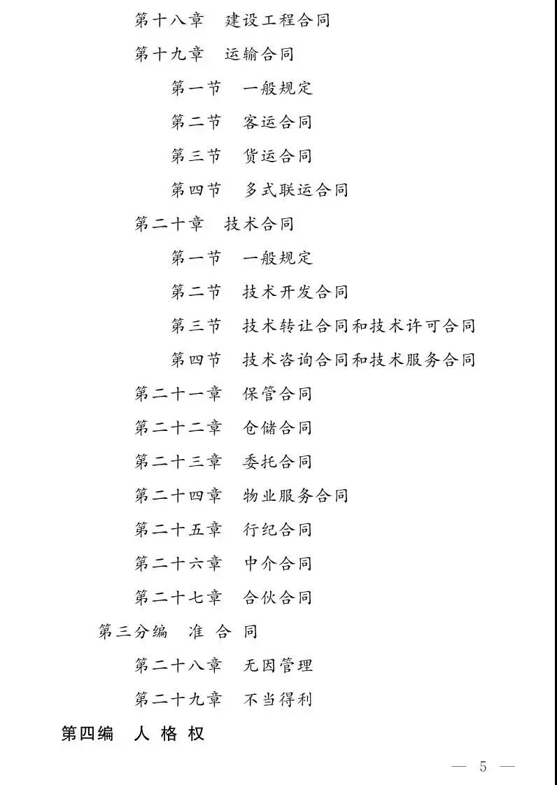 《中华人民共和国民法典(草案)》(2019年12月16日稿),合同法,共二十九章,五百二十五条,新增六章、九十七条。