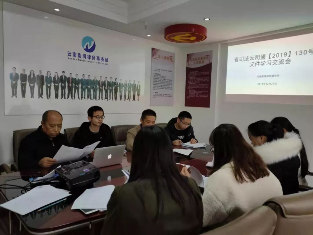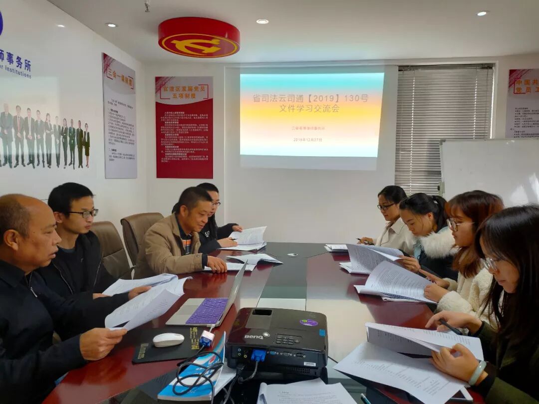2019年12月27日下午2点,我所组织了省司法云司通【2019】130号文件《全国刑事法律援助服务规范》学习交流会,我所主任赵勇,合伙人刘斌等律师参会。