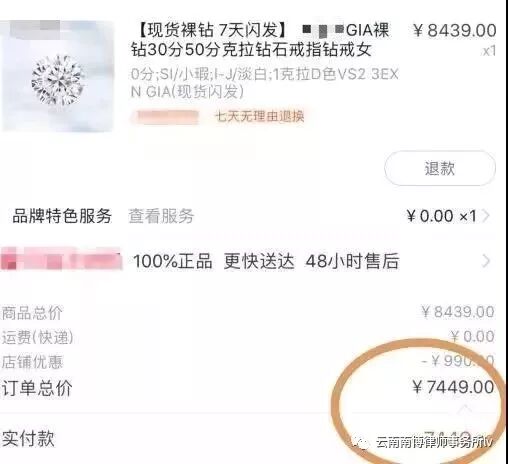 近日,柳某在电商平台上,看到某著名珠宝品牌有优惠活动,价格十分诱人。于是她立即花7449元,拍了一枚一克拉D色VS2 3EXN GIA裸钻。按照商品详情中的介绍,这颗裸钻是“现货闪发”,发货最迟不会超过7个工作日。就在柳某坐等心仪的钻石时,商家的客服却发来信息说,“没办法给您发货”。对于不予发货的原因,客服的理由是:“下单的链接是个定金链接,是给裸钻定制的”。但对此,柳某对此并不不予认可,商家随后又给了截然不同的解释:“对接了负责人,弄错了,没有办法给您发。”商家随后还表示,可以按平台规则赔500元,目前双方就此问题仍未达成一致。(半岛晨报)