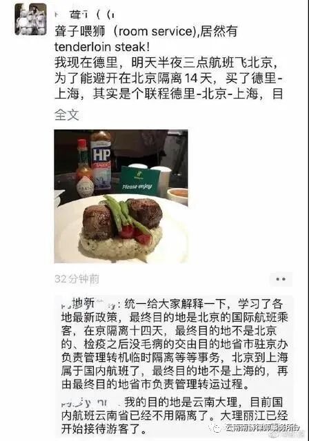 近日,一张朋友圈截图在云南网友微信群中被热传,截图中一网民在朋友圈中扬言,为了避开北京14天的隔离期,自己计划乘坐德里到上海,再到云南大理的联航飞机。因为大理已经开始接待游客,而他又是从上海过来,不需要被隔离观察。