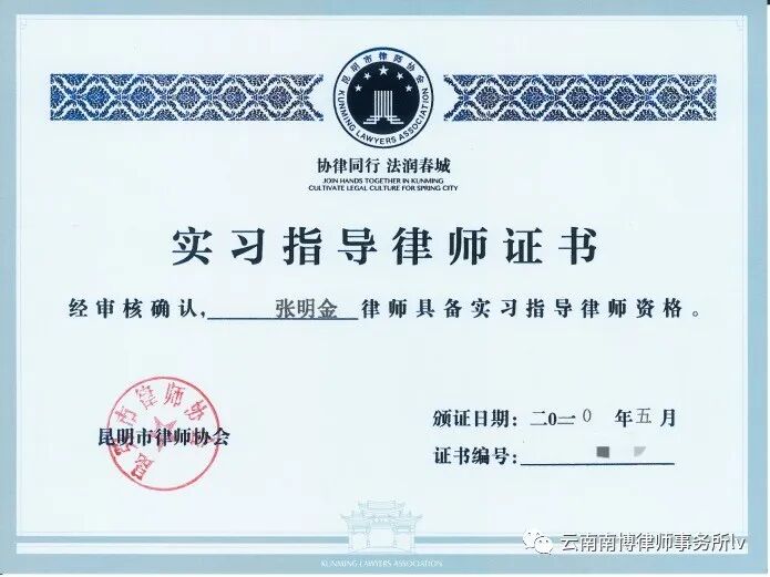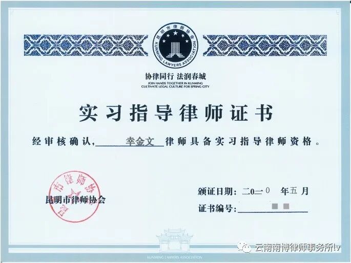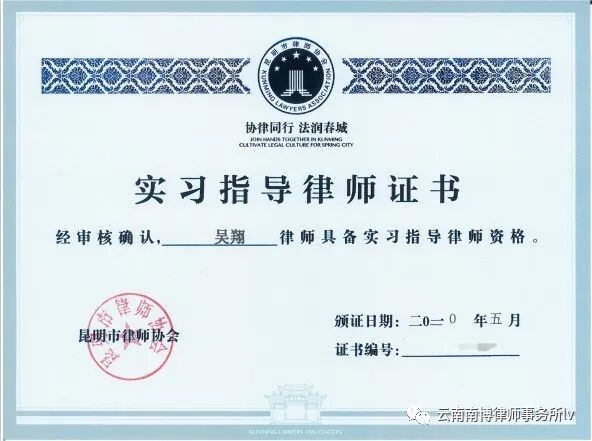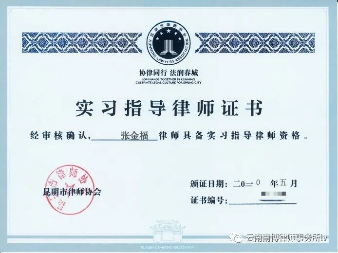 以上新晋四名实习指导律师表示今后在指导实习人员的工作中,将保持修德立信,身正为范,为人师表,诲人不倦的工作作风,为昆明市律师行业培养出合格律师人才作出贡献!