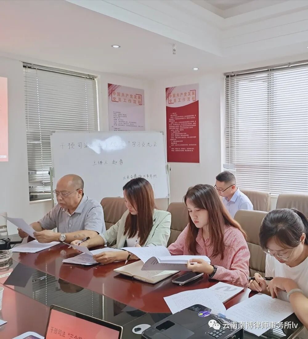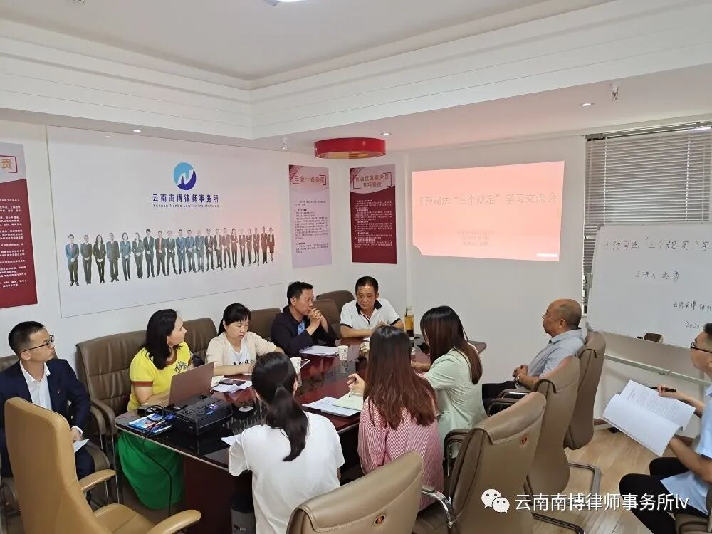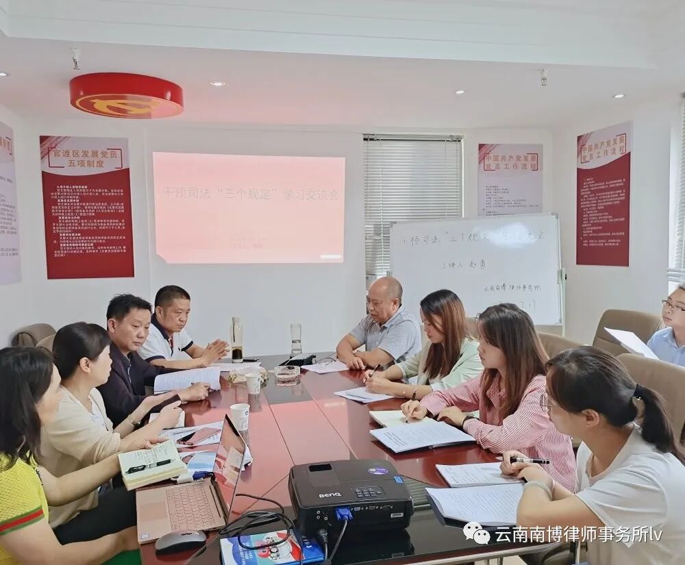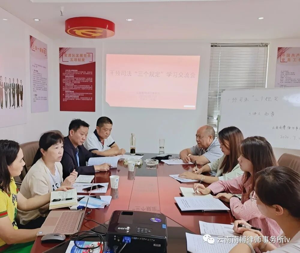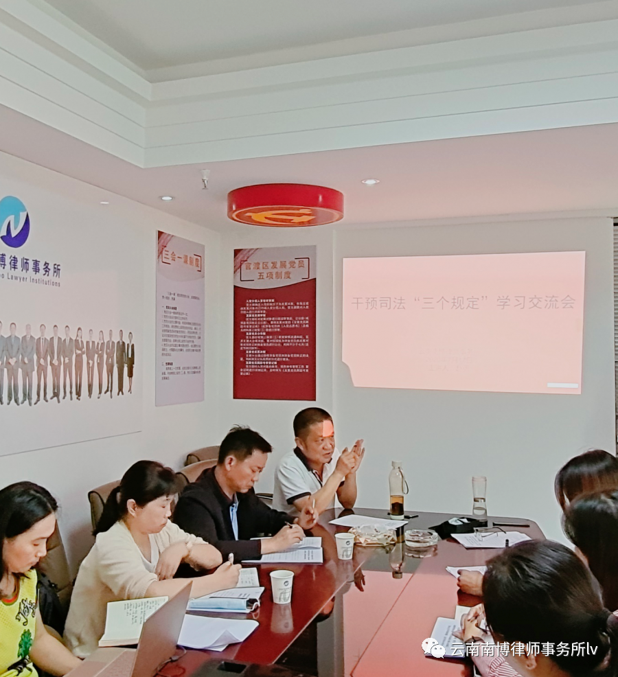 7月17日上午,干预司法“三个规定”学习交流会在我所会议室召开,官渡区司法局副局长宋忠福、公律科科长包志凌、法律援助科科长王淑梅出席会议。我所赵勇主任主讲,合伙人律师及部分专职律师参加会议。