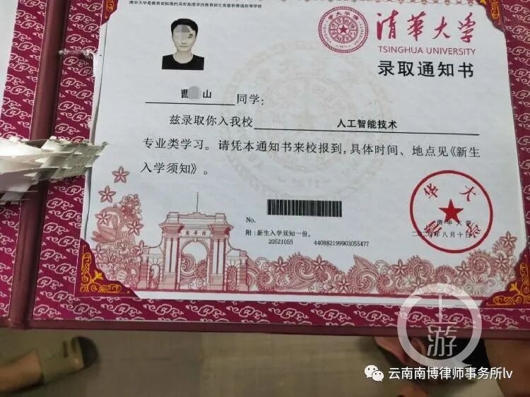 曹某伪造清华大学录取通知书,家人为其花四五万元准备办酒席,还准备戴大红花游行,荣耀门楣,不料惊动当地教办,一查发现是假的……网传的多张图片显示,疑为曹某和其父亲捧着录取通知书喜笑颜开,村里还在路口处悬挂横幅放鞭炮为其祝贺。镇长称看到录取通知书上有错字,觉得不真实,就打电话给市教育局的工作人员,一核实发现是假的。当地警方回应:考生是为了向家人逞能,目前未涉及违法犯罪,会对其进行口头教育!
