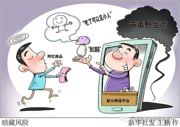 部分卖家借助互联网平台,向消费者兜售有一定毒性的菌菇。在产品介绍和评价中,一些人还宣扬菌类的“致幻”作用。一些网络平台的卖家除销售常见的带毒野生菌外,还兜售一种外号为“幻觉蘑菇”的毒品野生菌。“幻觉蘑菇”学名裸盖菇,食用后会产生更明显的致幻效果。据相关人士透露:“裸盖菇内含有一种名为‘赛洛西宾’(又名裸盖菇素)的神经毒素,人在服用后会出现幻视、幻听、感觉错乱、人格解体及行为错乱等反应,严重时会致人死亡。”(新华社)