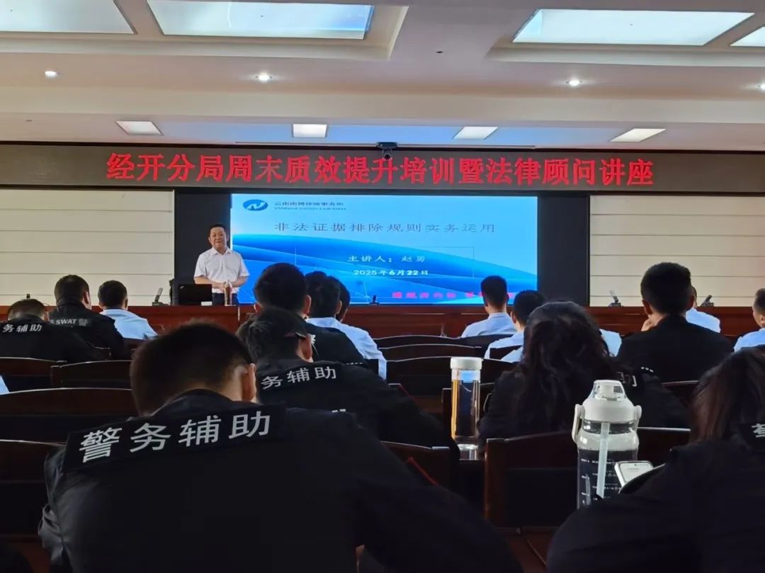 赵勇主任作为云南南博律师事务所的资深法律专家,在刑事辩护与证据规则研究领域拥有丰富的实务经验和深厚的理论功底。讲座中,他紧密围绕公安执法实践中的常见问题,以《刑事诉讼法》及相关司法解释为依据,从非法证据排除规则的立法宗旨、适用范围、排除程序等多个维度展开深入讲解。 他重点剖析了非法言词证据与非法实物证据的界定标准,结合典型案例详细阐述了“刑讯逼供”“暴力取证”等违法情形的司法认定要点。同时,针对执法人员在证据收集过程中可能遇到的程序瑕疵问题,如讯问笔录制作不规范、物证扣押手续不完备等,赵勇主任从法律风险防控角度提出了具体的操作建议,帮助执法人员明晰合法取证的边界与规范。