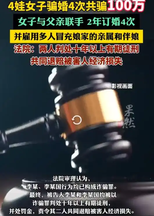 李某父女通过虚构“娘家住所”“陪嫁房”、雇佣冒充亲属等手段,以结婚为幌子骗取彩礼、聘礼及首饰,符合诈骗罪的构成要件。根据《刑法》第266条,诈骗罪需以非法占有为目的,虚构事实或隐瞒真相骗取财物。数额认定与量刑:涉案金额达100万余元,属于“数额特别巨大”(根据司法解释,50万元以上即属此列),依法可处十年以上有期徒刑或无期徒刑。法院判处十年以上有期徒刑符合法律规定,且父女二人作为共同犯罪人,需承担连带责任。