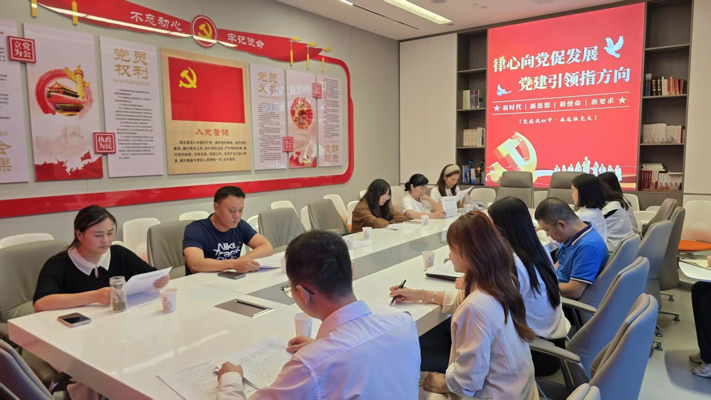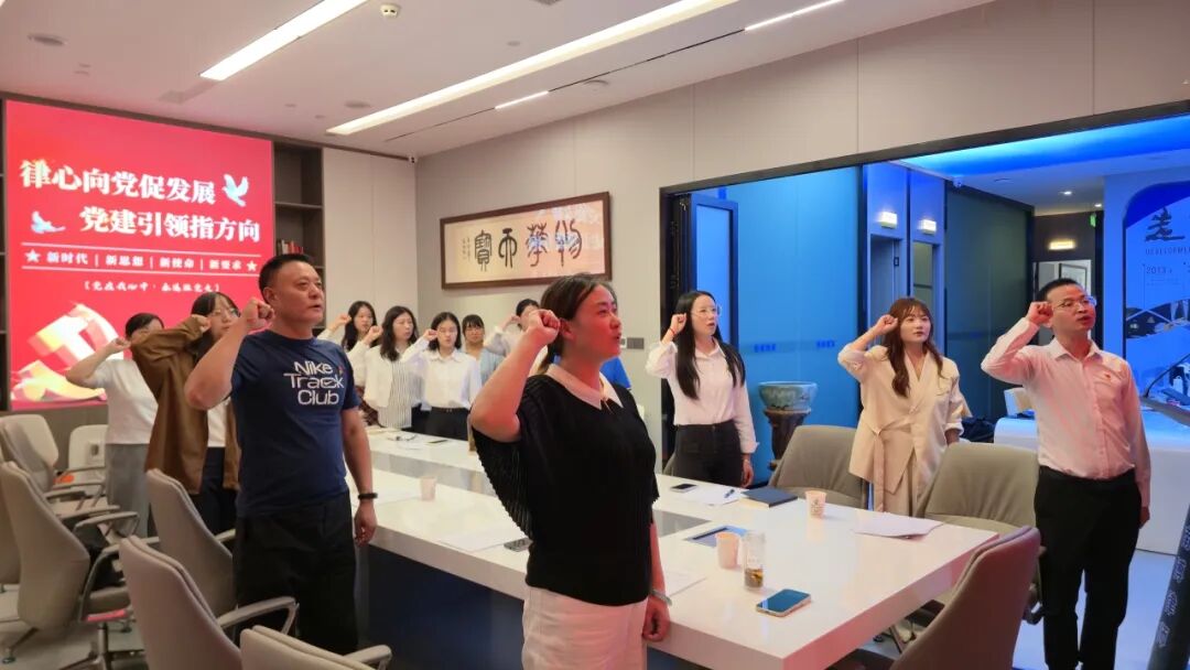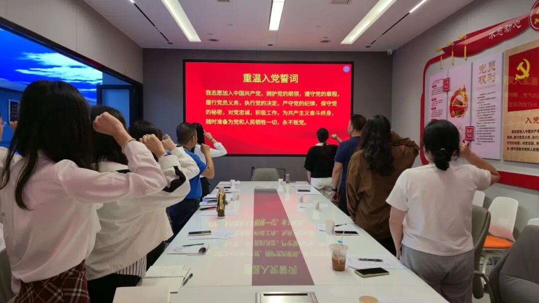 活动伊始,在庄严肃穆的氛围中,全体党员起立奏唱国歌,随后,全体党员高举右拳,在吴翔书记的领誓下重温入党誓词。“我志愿加入中国共产党,拥护党的纲领,遵守党的章程……” 铿锵有力的誓言回荡在党建活动室内,既是对入党初心的回望,也是对践行使命的郑重承诺,进一步坚定了党员们为党和人民事业奋斗终身的信念。