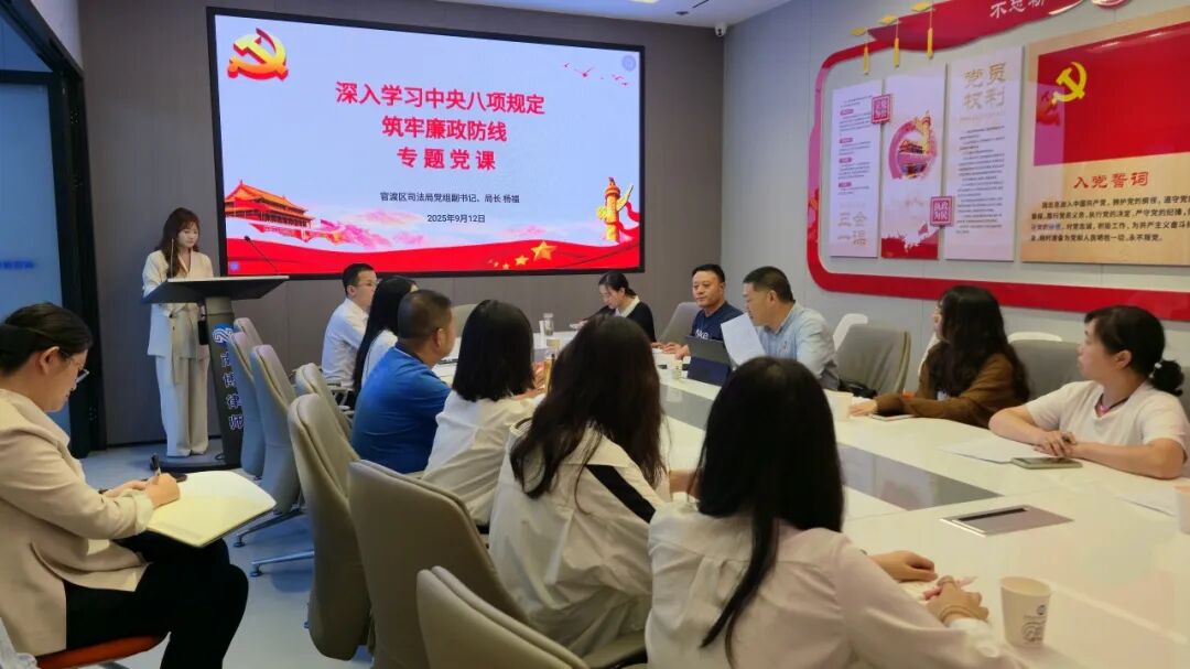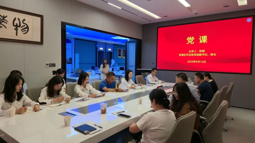 官渡区司法局党组副书记、局长杨福讲授《深入学习中央八项规定 筑牢廉政防线》专题党课。杨福局长结合律师行业特点,从 “中央八项规定精神解读”“党员律师廉政责任与行业风险”“做新时代廉洁党员律师” 三个维度,为全体党员律师带来了一堂深刻且实用的廉政教育课。