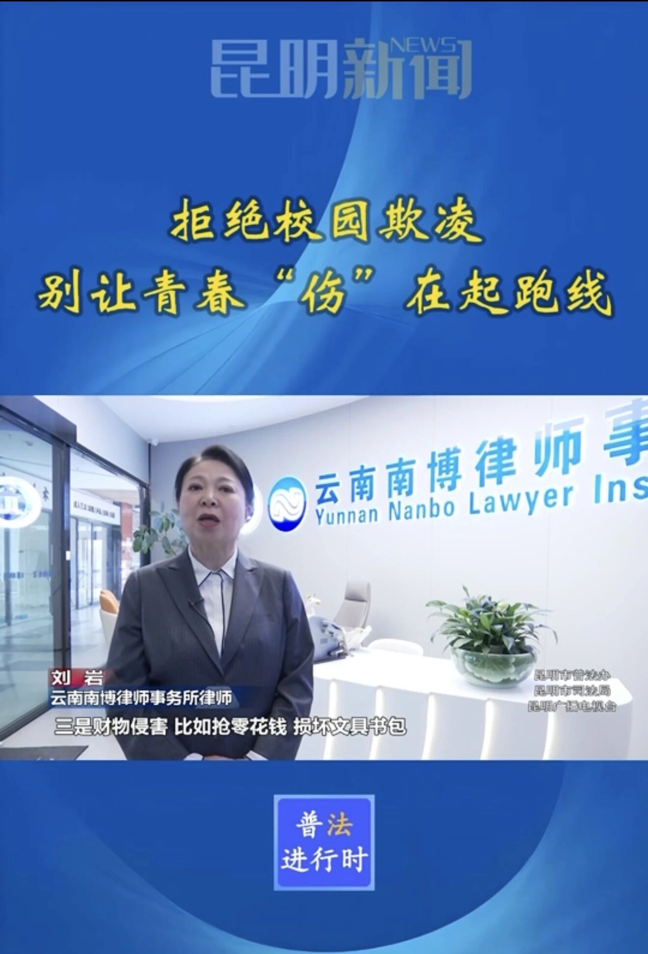 此次刘岩律师受邀参与《普法进行时》栏目,不仅展现了个人扎实的法律素养和丰富的实务经验,更彰显了云南南博律师事务所对未成年人权益保护工作的高度重视与责任担当。