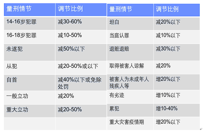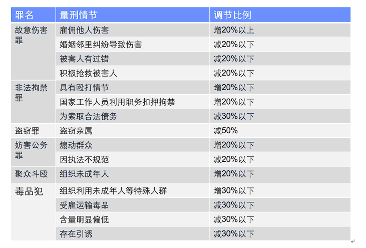 常见刑事案件对量刑有影响的情节及对基准刑的调节幅度: