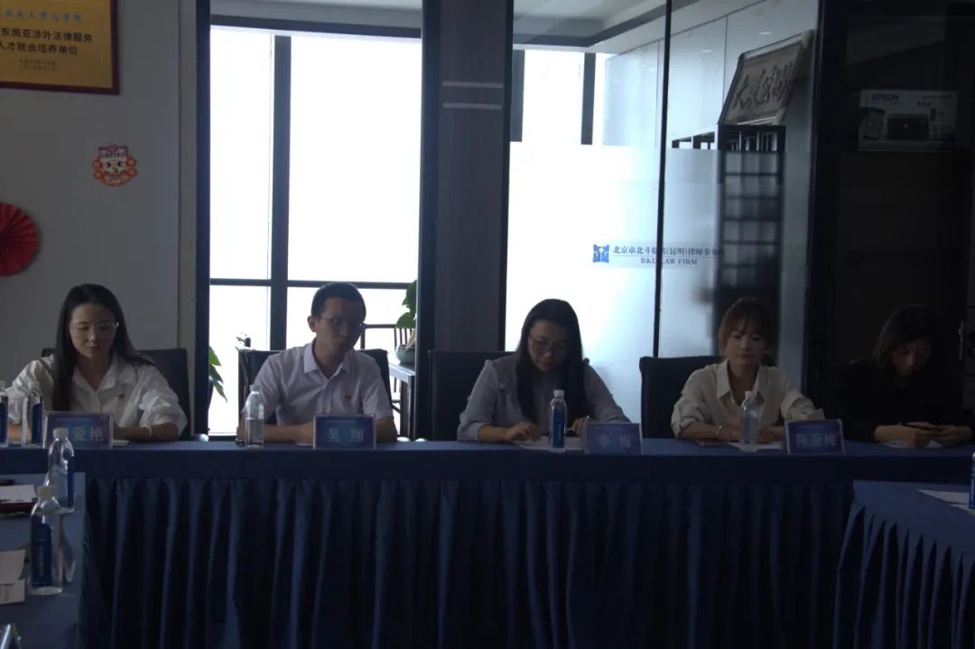 当日下午,党建工作交流会在北京市北斗鼎铭(昆明)律师事务所举行。我所党支部书记、合伙人吴翔,合伙人李梅及青年律师代表出席了本次会议。
